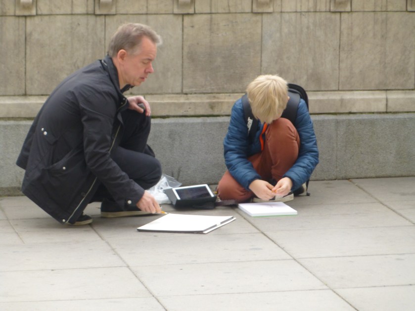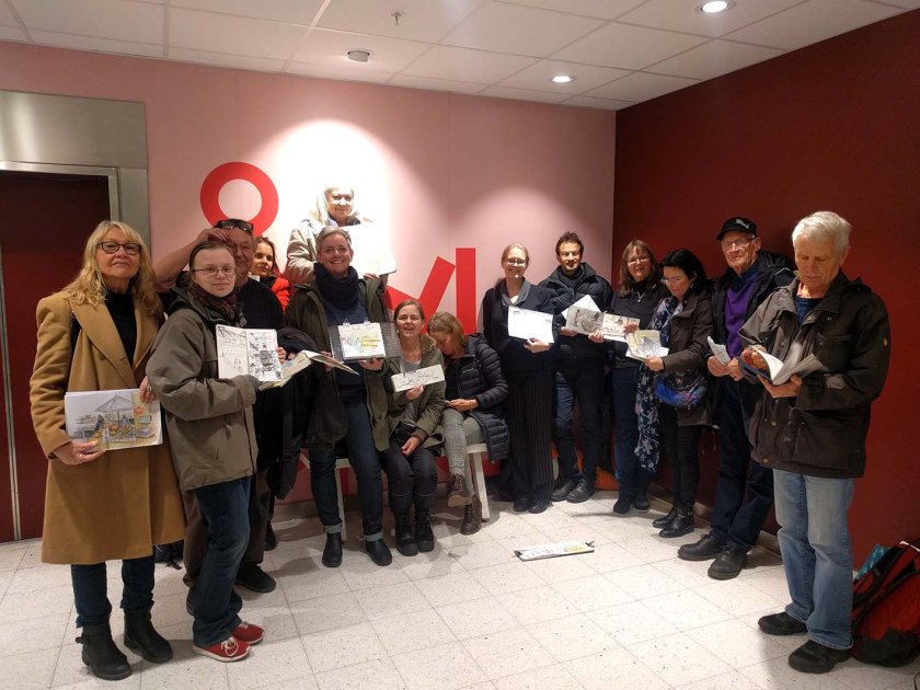 Vi var uppåt 20 personer som kom, varav flera helt nya skissare. Välkomna – det är roligt att vi blir fler!
