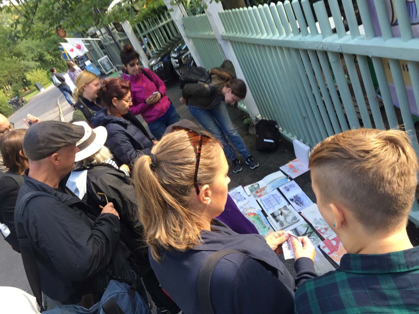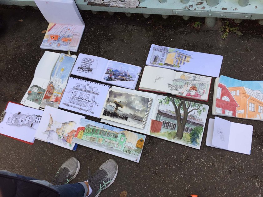 Urban sketchers är en internationell organisation, och det märktes den här dagen, med besökande tecknare från Tyskland och Israel. Alltid lika kul att träffa likasinnade!