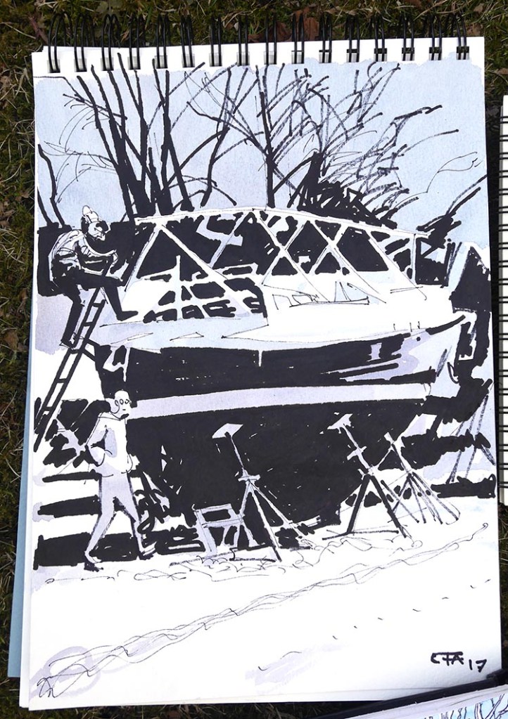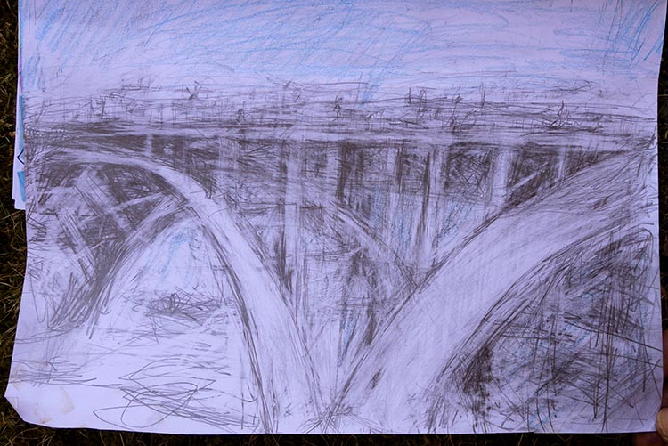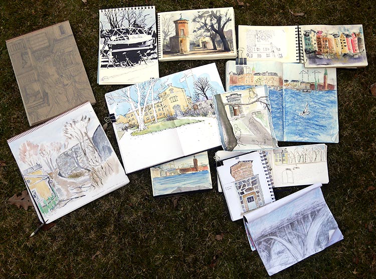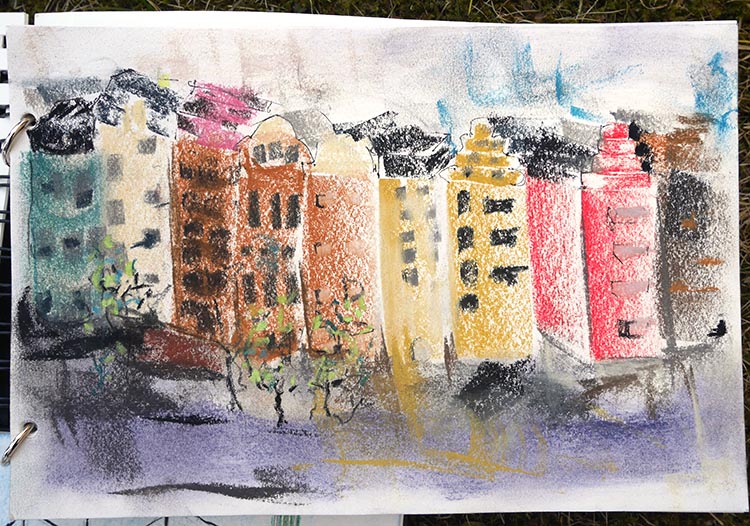 Långholmen är full av intressanta platser, och vyer mot både Kungsholmen och Södermalm. Alla stannade inte vid Centralfängelset, så dagens skörd av teckningar bjöd på väldigt skilda miljöer: