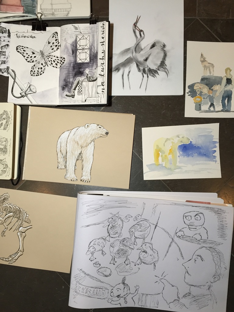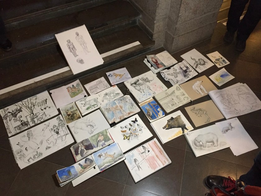 Efter ett uppehåll i december (många tenderar att vara upptagna av någon anledning, där kring jul och nyår) sammanstrålade Urban sketchers Stockholm igen sista söndagen i januari, denna gång på Naturhistoriska riksmuseet.