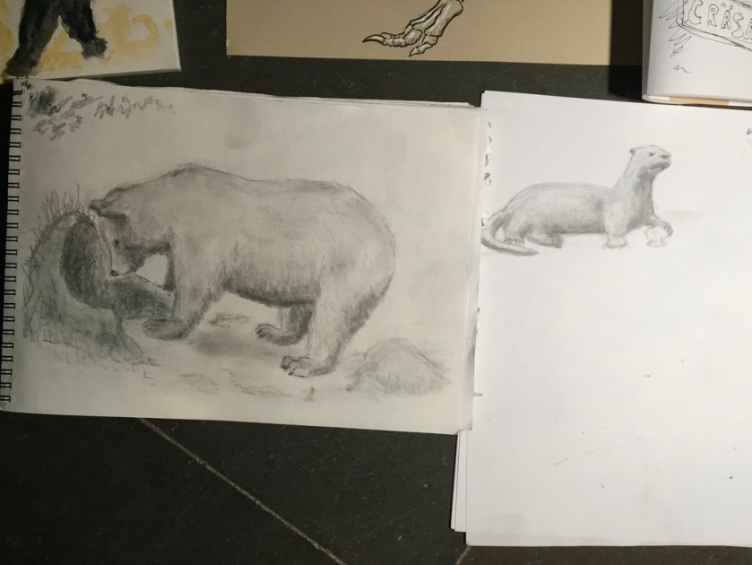 Flera nya deltagare kom och skissade, och som vanligt blev det fika och prat efteråt, och en del bläddrande i varandras skissböcker och ritblock. Alltid lika roligt!