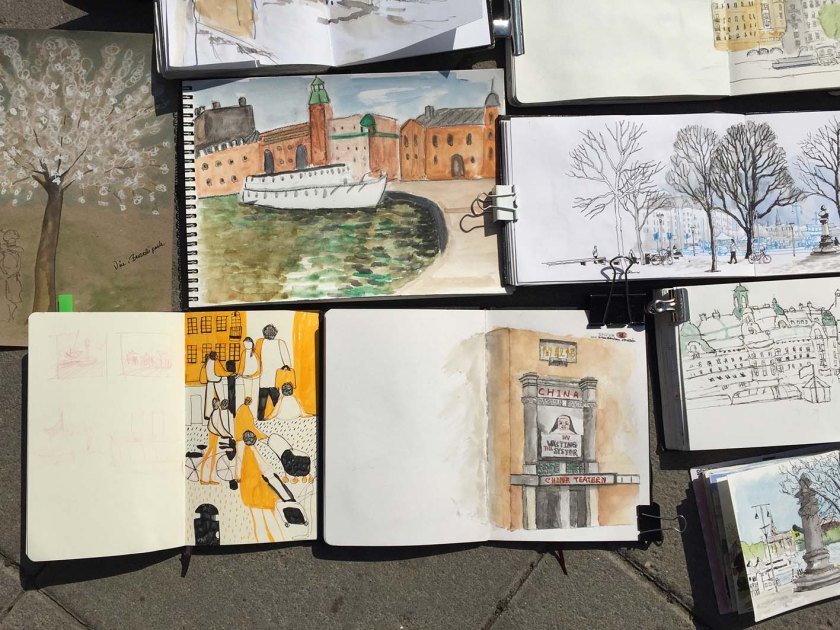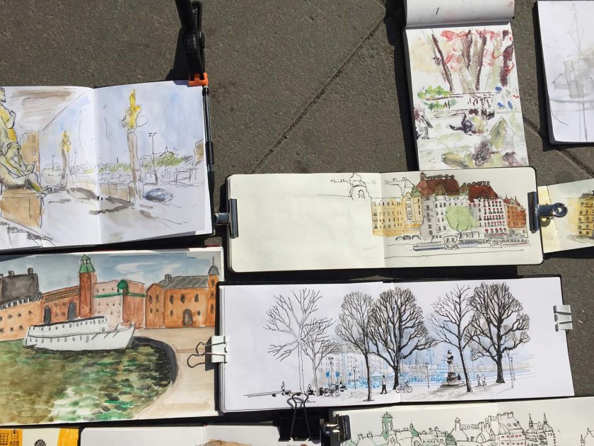 En varm kaffekopp på ett fik en bit bort avrundade dagen, och som vanligt bläddrades det i skissböcker, tjuvtittades i andras pennfack och jämfördes färger runt borden.