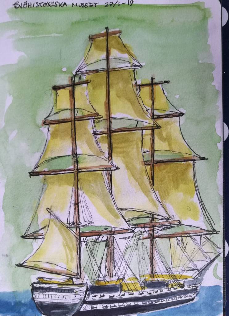 Den 27 januari samlades Urban sketchers Stockholm för ännu en tecknardag tillsammans, den här gången på Sjöhistoriska museet – ett perfekt ställe att teckna en kall vinterdag.