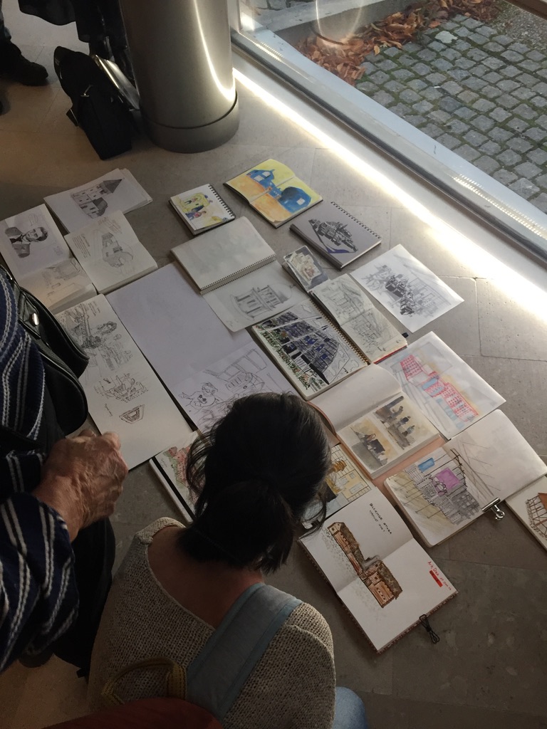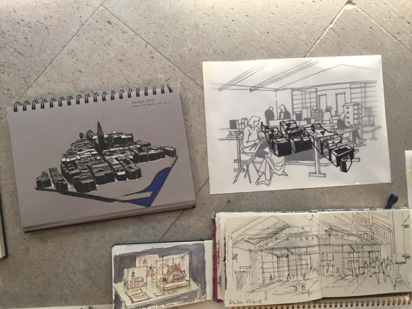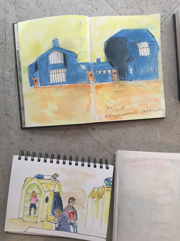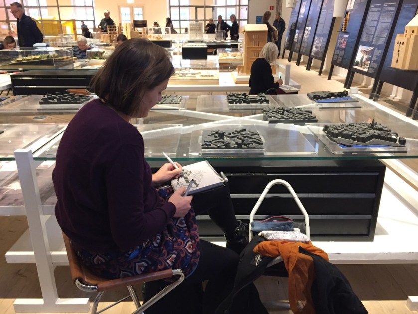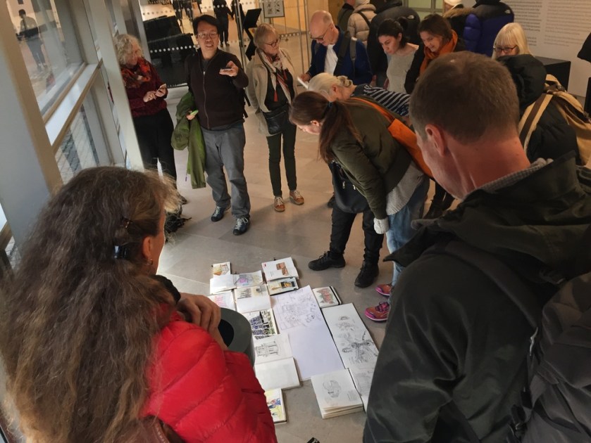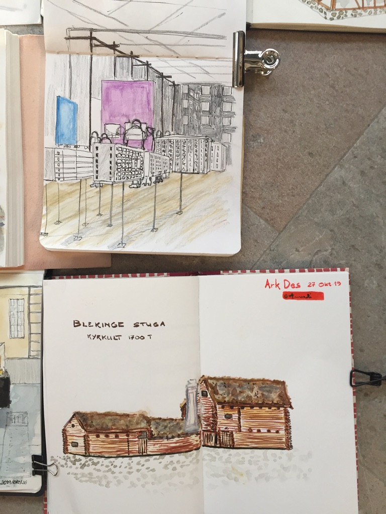 Sista söndagen i oktober bjöd på kallt och höstruggigt väder, lämpat för att stanna hemma under en filt. Det var dags för USK Stockholm att gå inomhus, och vi var ett 20-tal som möttes upp i Arkdes spännande utställningslokaler.