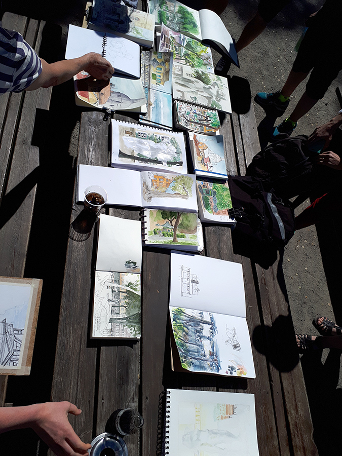 Efteråt samlades vi för sedvanligt fika och kikande i varandras skissböcker, alltid lika roligt.