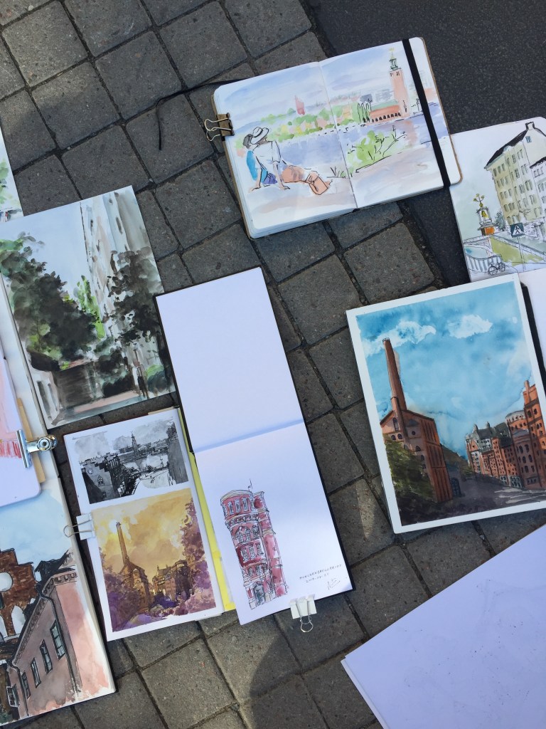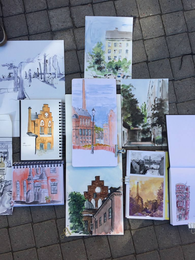 Urban sketchers är en internationell organisation, och det märktes den här dagen, med besökande tecknare från Tyskland och Israel. Alltid lika kul att träffa likasinnade!