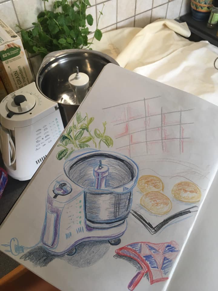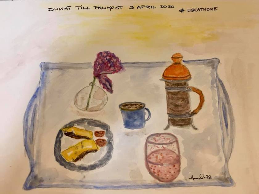Vi slutar ju inte teckna för att coronaviruset ställer till det så vi inte kan ses. Vi tecknar teman på egen hand istället under de veckor (månader?) vi inte kan ses i stan.