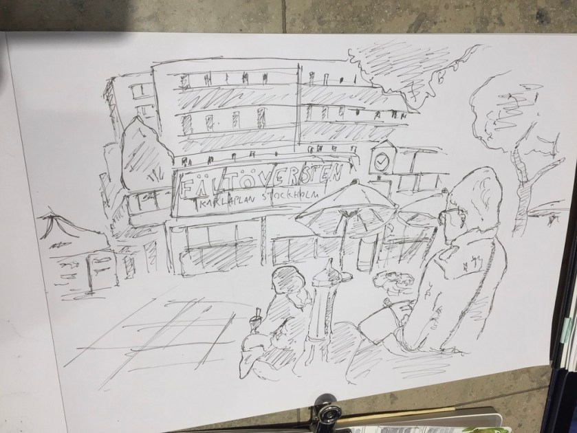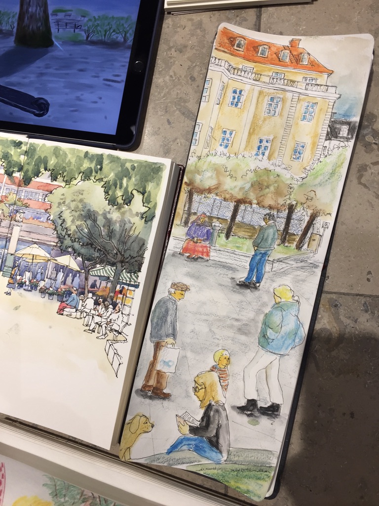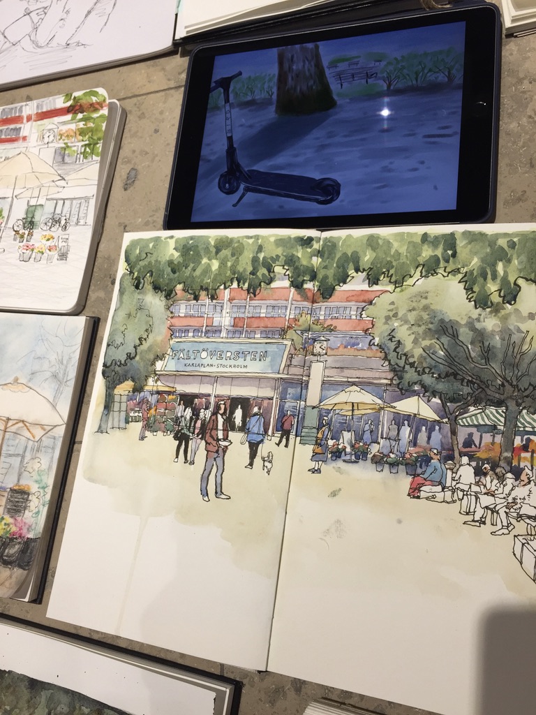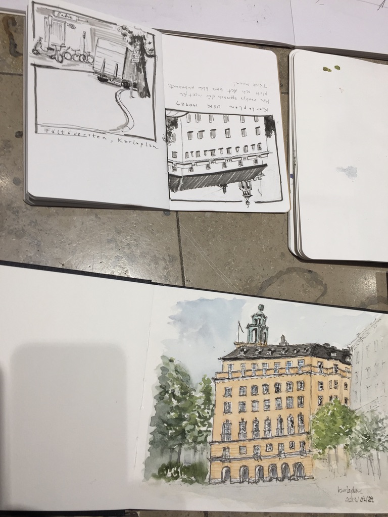 Du som är nyfiken på Urban sketchers, gå gärna med i vår Facebookgrupp? Där annonserar vi ut våra träffar (sista söndagen i varje månad), och delar med oss då och då av teckningar från andra tidpunkter. Du är välkommen!