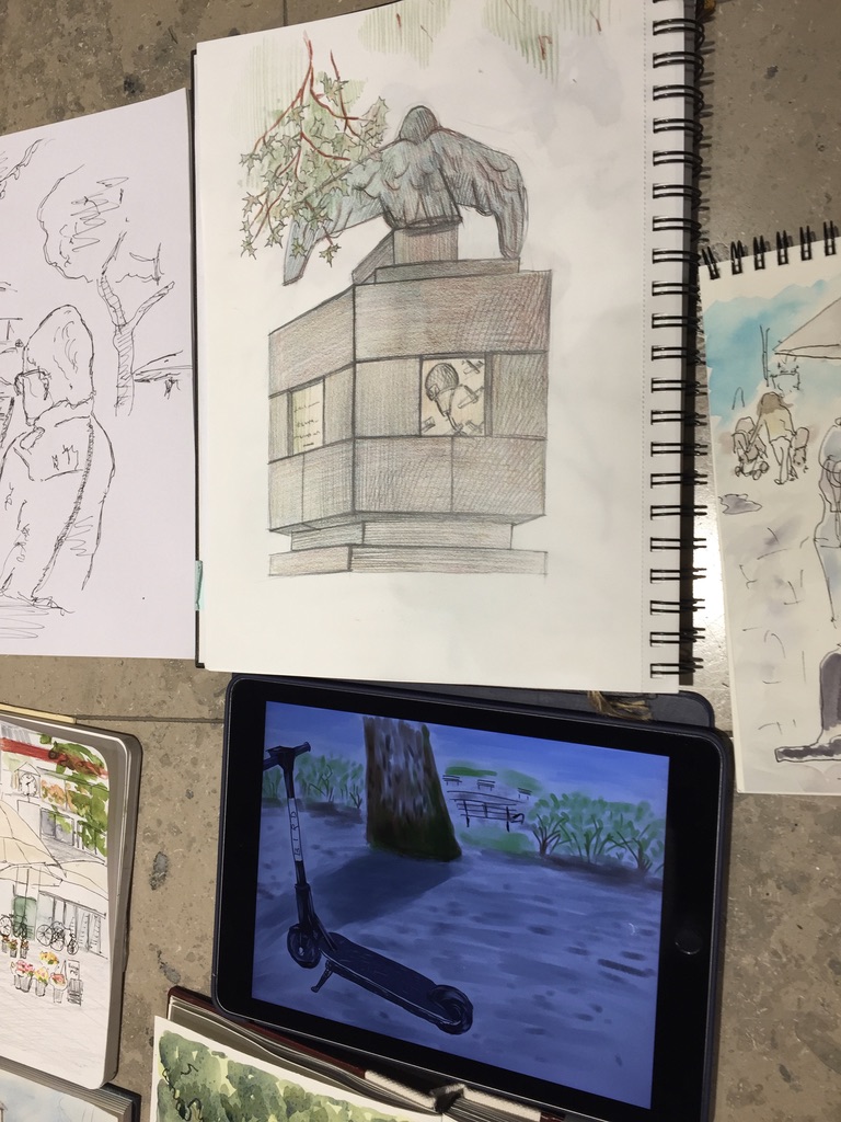 Vi var uppåt 20 personer som kom, varav flera helt nya skissare. Välkomna – det är roligt att vi blir fler!